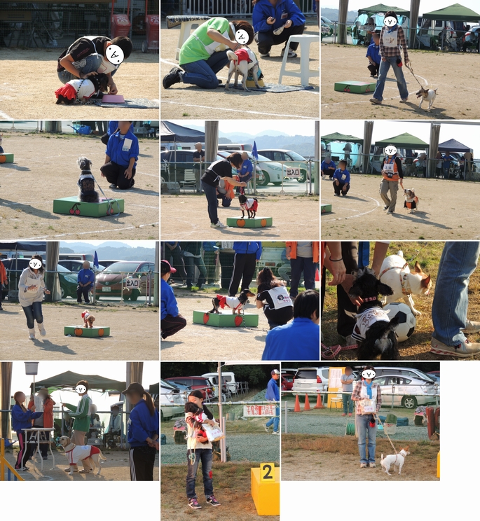水の入った容器をワンコを連れた手で運んで早さを競う、