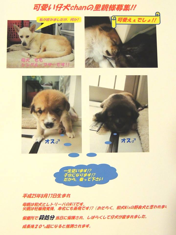 友達が先日、保健所でワンコ譲り受けたのだが、